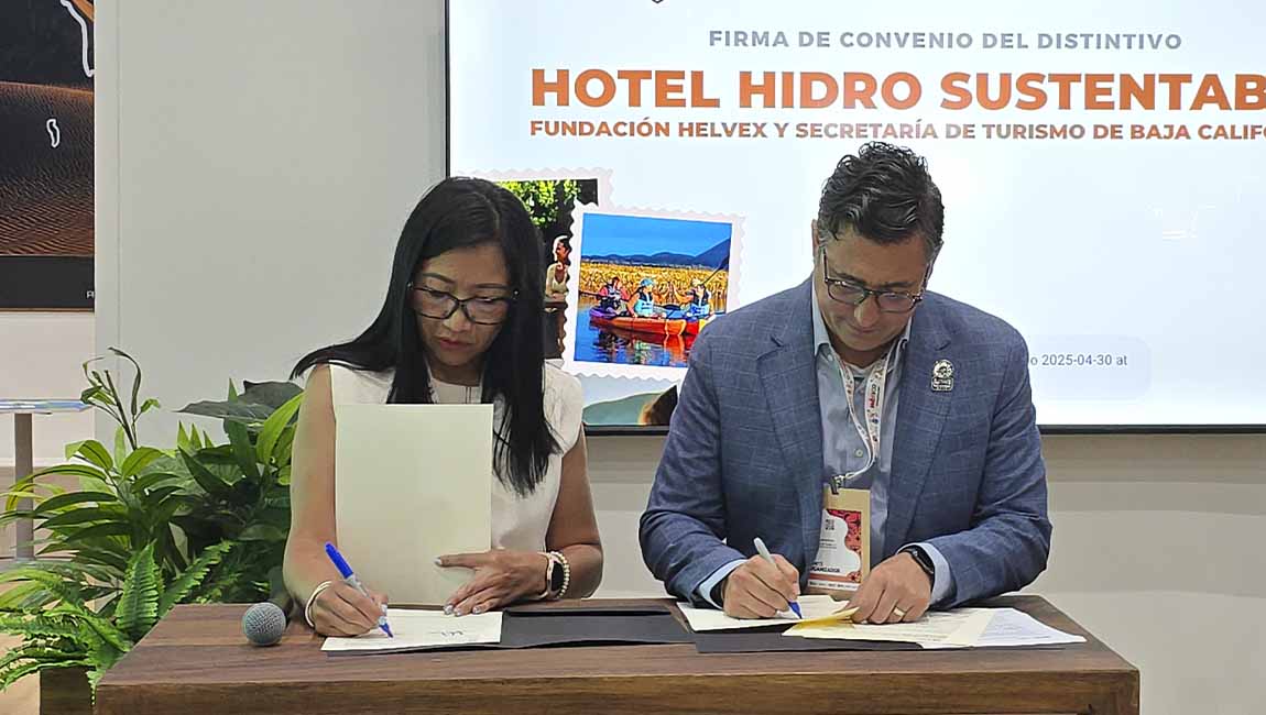 Baja California, 30 de abril de 2025. En el marco del Tianguis Turístico 2025, la Secretaría de Turismo del Estado de Baja California y Fundación Helvex presentaron, ante representantes de la industria turística nacional, la décima edición del Distintivo Hotel Hidro Sustentable, una iniciativa que promueve las mejores prácticas en el cuidado y uso eficiente del agua dentro del sector hotelero.